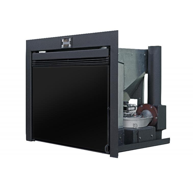 La unión entre un quemador de pellets, la belleza de sus llamas y el confort de su calor; unido al diseño de un insertable que facilita una solución arquitectónica integradora.