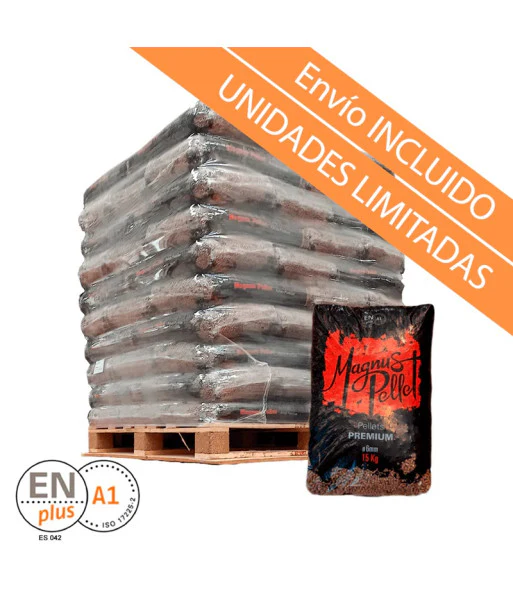 Magnus Pellet en formato de Palet de 70 sacos con 15 kg de pellets cada uno.
